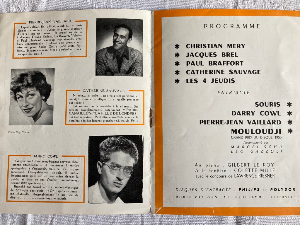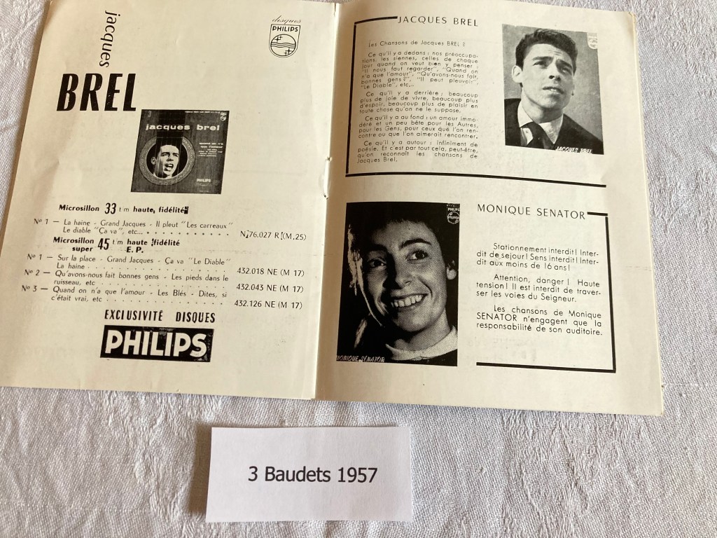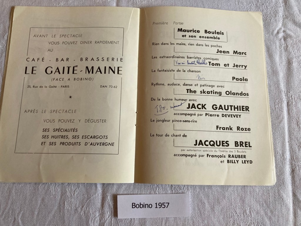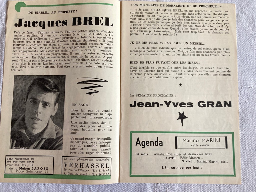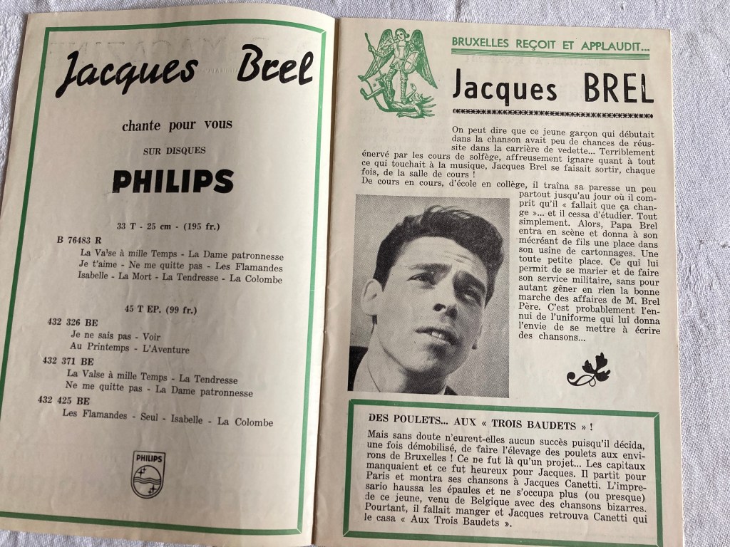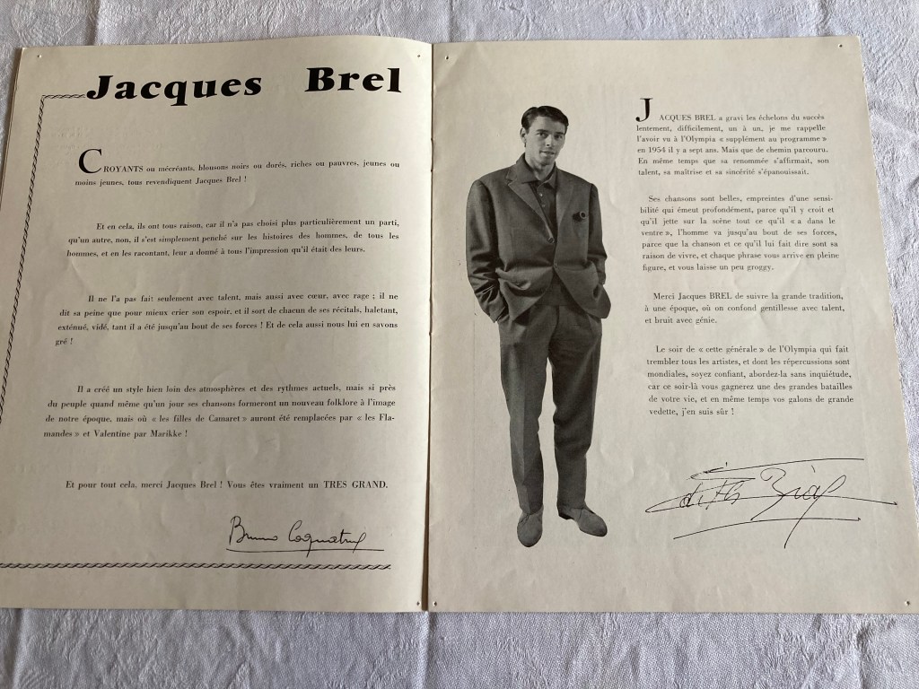 Voici la liste de ma collection actuelle de programmes des spectacles de Jacques Brel :